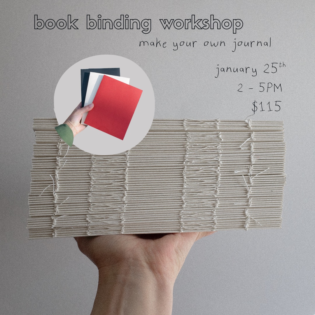 Join us for a bookbinding workshop led by Marilyn Sanchez of Oîma! Participants will learn the French link stitch, a decorative and functional bookbinding technique. They will be guided through folding signatures, preparing materials, and stitching their own hand-bound book. Along the way, we'll explore the rhythm of stitching and the meditative nature of working with paper and thread. Participants will leave with a completed handmade book, foundational bookbinding skills, and a deeper appreciation for the creative, tactile process of making by hand. All materials provided.