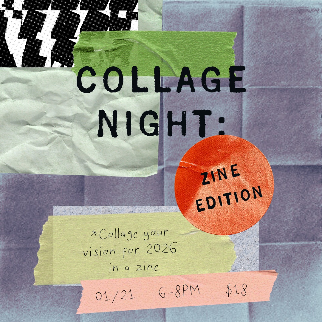 This Collage Night, we're turning scissors and glue into a plan for 2026. Using pre-folded zines and guided prompts, you'll collage a small, personal zine meant to inspire (and maybe clarify) what you want from the year ahead. All materials provided.