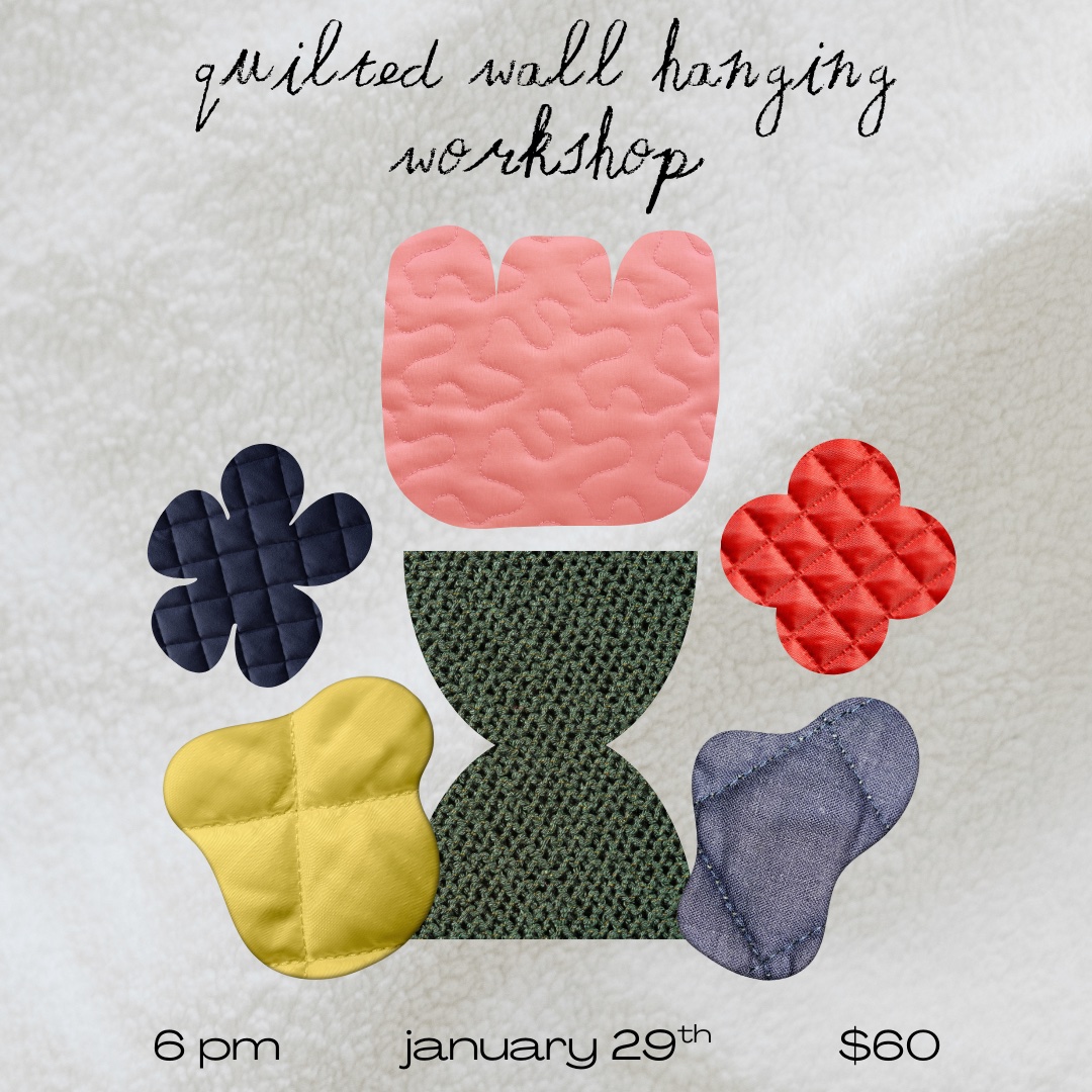 Join us for a quilted wall hanging workshop led by artist Rebecca Soriano. Working in the spirit of reuse and recycling, we'll provide a quilted backing, hanging materials, and quilted, Matisse-inspired cut-outs made from reclaimed fabric. You'll learn how to ladder stitch your design and leave with a finished textile piece ready to hang.